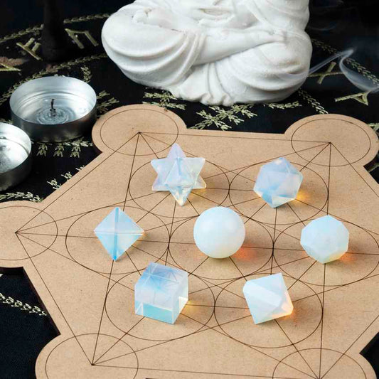 Opalite Platonic Solids Crystal Geometry Set (15-20 mm)