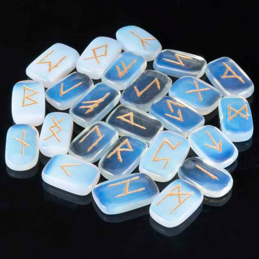 Opalite Gemstone Engraved Rune Stones Set (25 Pcs)