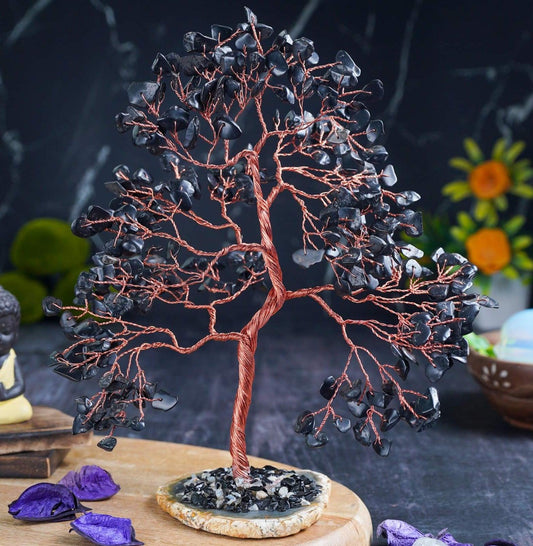 Black Tourmaline Crystal Tree – for Grounding, Protection & Good Luck Home Decor