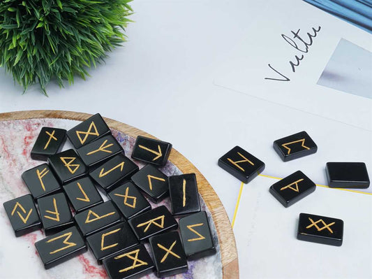 Black Agate Rectangle Shape Gemstone Runes 25 pcs Rune Set