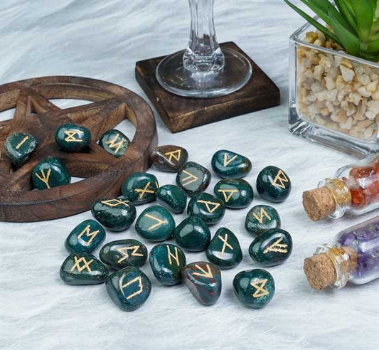 Green Jade Rectangle Shape Gemstone Runes 25 pcs Rune Set