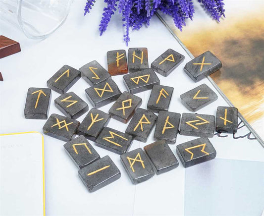 Grey Aventurine Rectangle Shape Gemstone Runes 25 pcs Rune Set