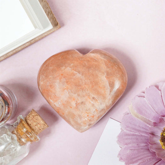Peach Moonstone Crystal Heart Shape Stone - Emotional Healing and Love