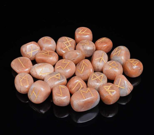 Peach moonstone rune stones set engraved