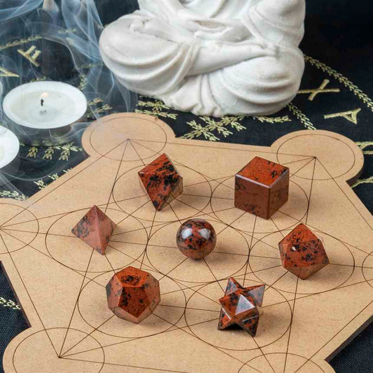 Mahogany Obsidian Platonic Solids Crystal Geometry Set (15-20 mm)