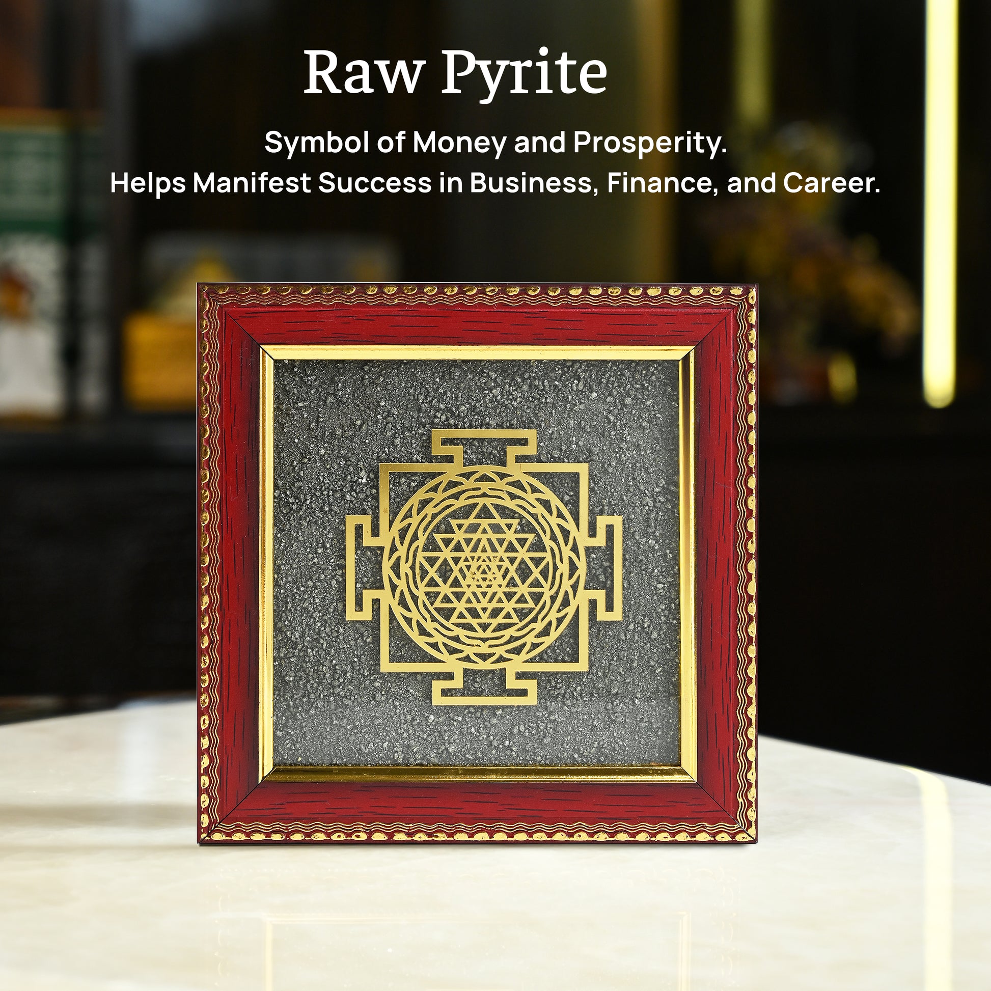 Sri Yantra Pyrite Dust Frame – Vastu Yantra for Wealth, Prosperity & Positive Energy